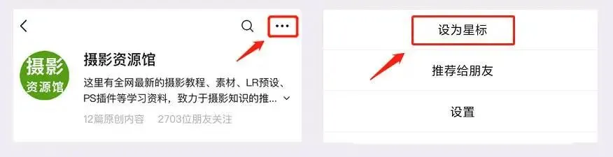 不想错过优质资源分享,请点左上角蓝字摄影资源馆,然后按下面步骤,设置星标★ 就可以优先推送了,谢谢大家的支持。