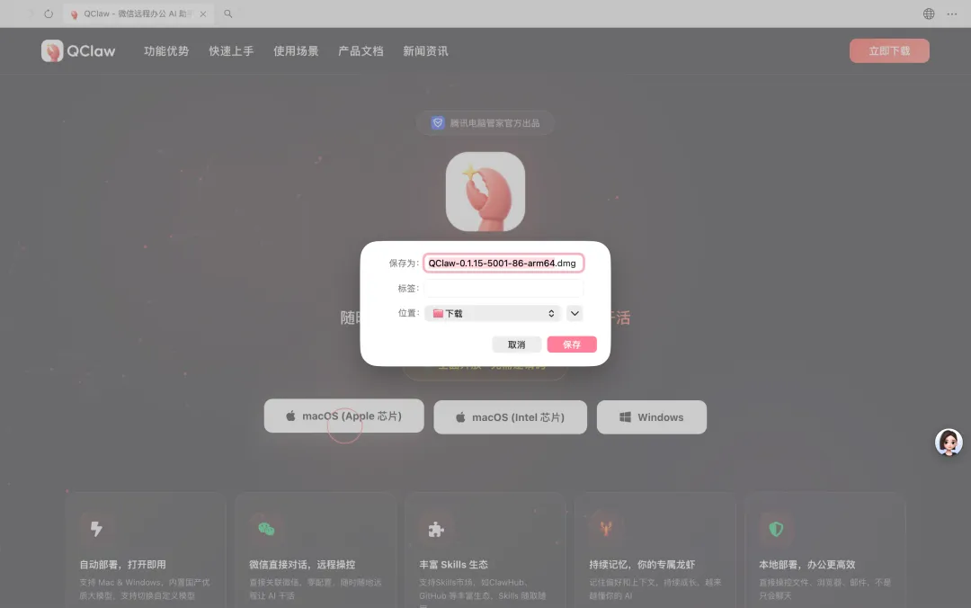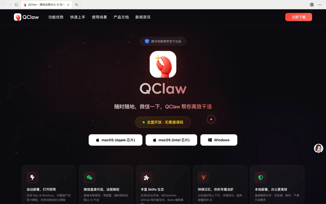 打开电脑浏览器,输入腾讯龙虾官方网址: