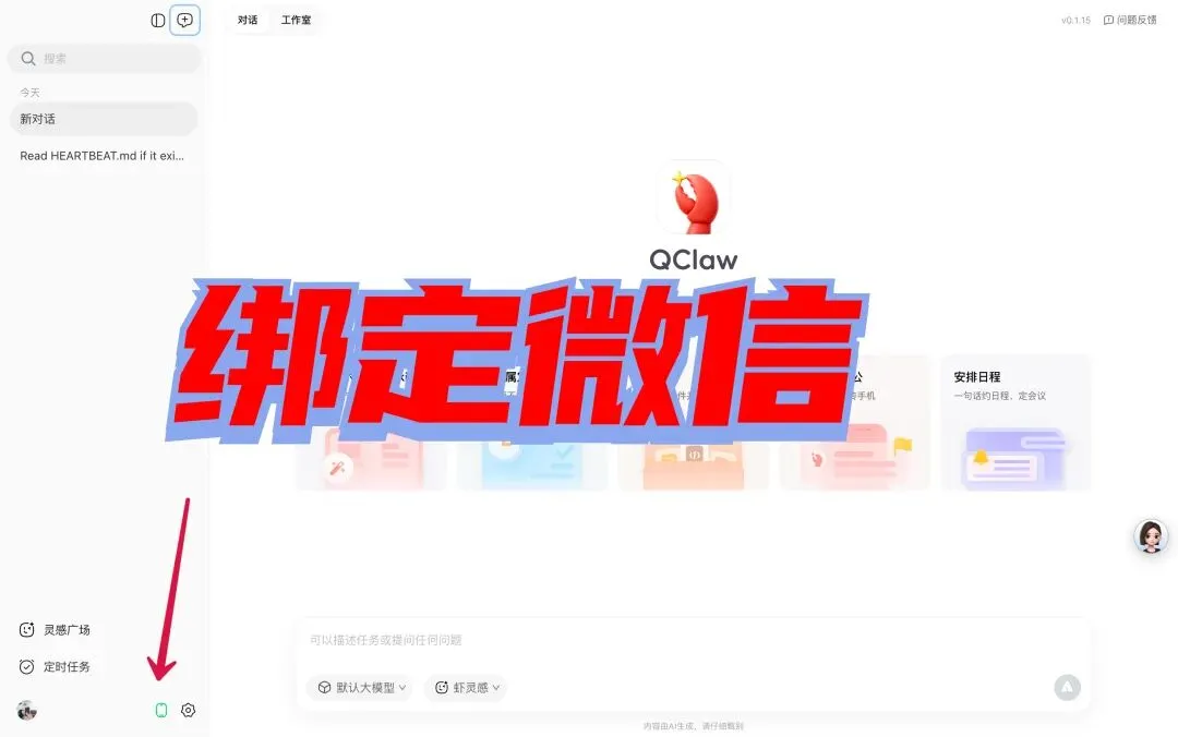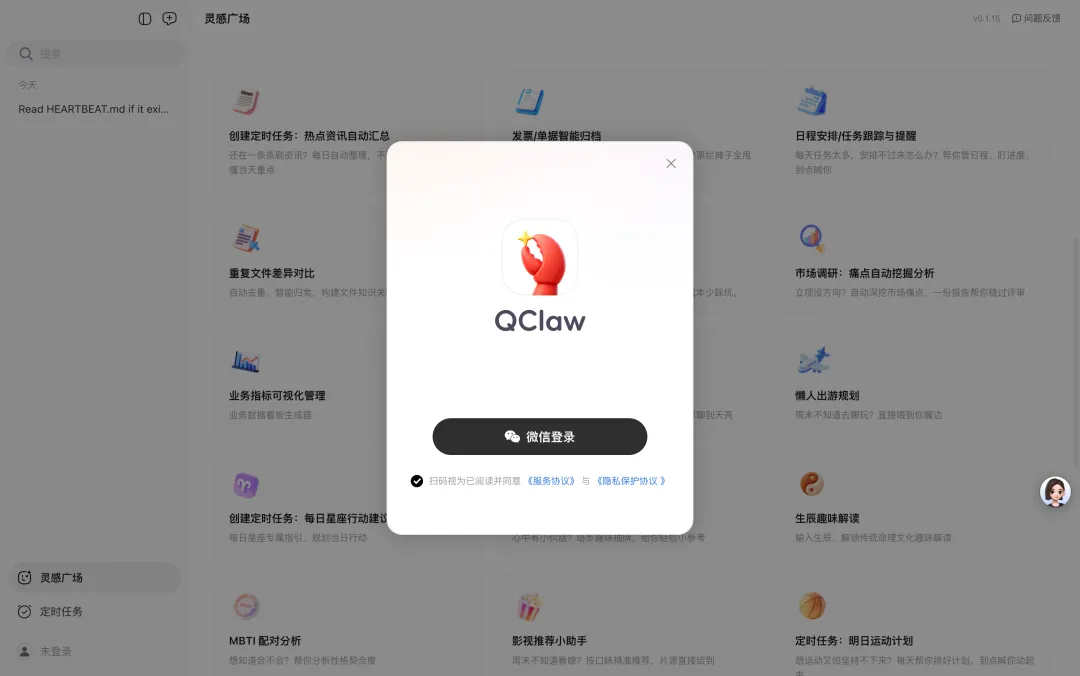 退出重登QClaw,重新扫码,确保手机电脑同网络