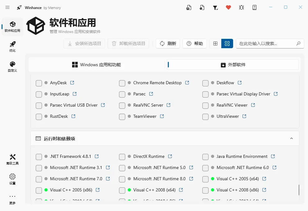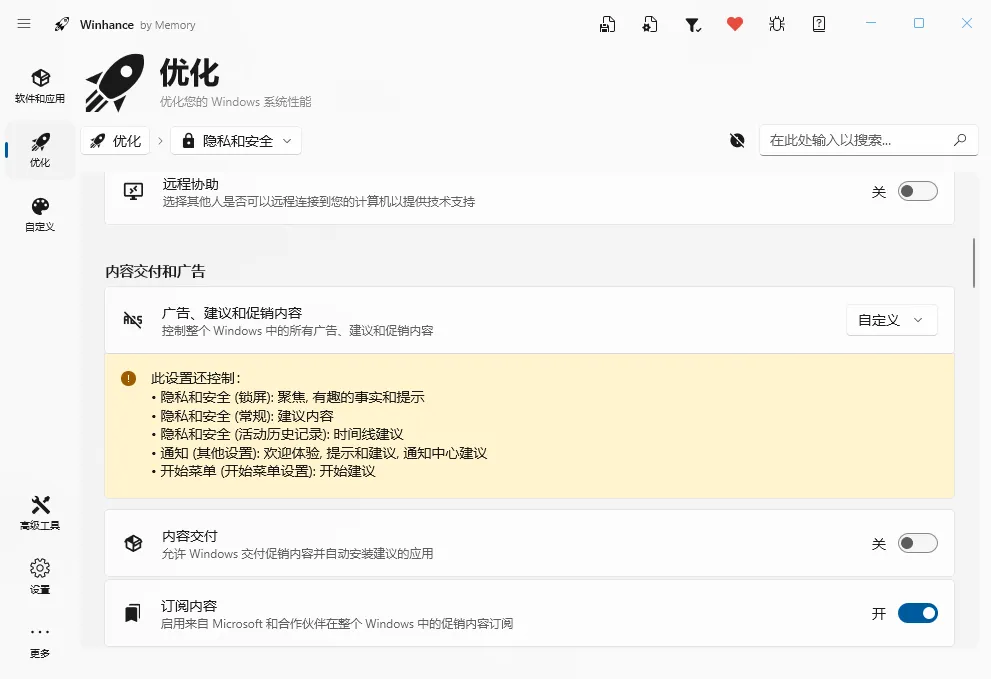 Winhance 将复杂的系统调整流程化、可视化,主要功能模块包括: