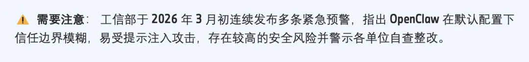 当前另一个真实局限是稳定性。多步骤跨系统的复杂任务仍会出错,长任务中上下文容易被无关信息占满。因此, OpenClaw 现阶段更适合个人使用,安装在个人电脑上。 根据公司安全规定,不允许安装白名单之外的软件。
