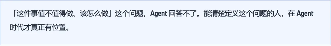Agent 能执行、能生成、能优化,但它需要有人告诉它做什么。而"该做什么"就是业务判断。当执行越来越多地外包出去,对「该做什么、该改什么」的感觉会慢慢变钝。