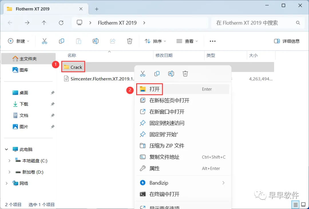 14、回到Flotherm XT 2019文件夹,找到【Crack】文件夹,右键【打开】它