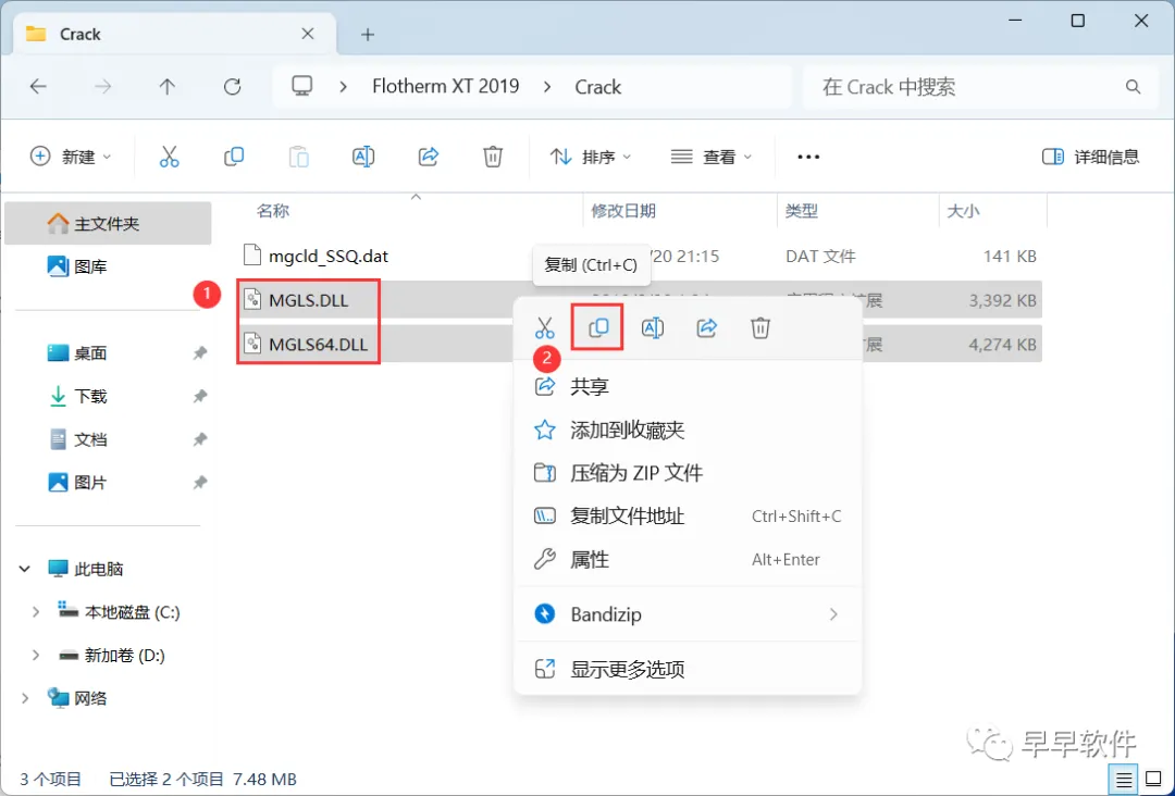 15、找到并选中【MGLS.DLL】和【MGLS64.DLL 】文件,再右键点击【复制按钮】