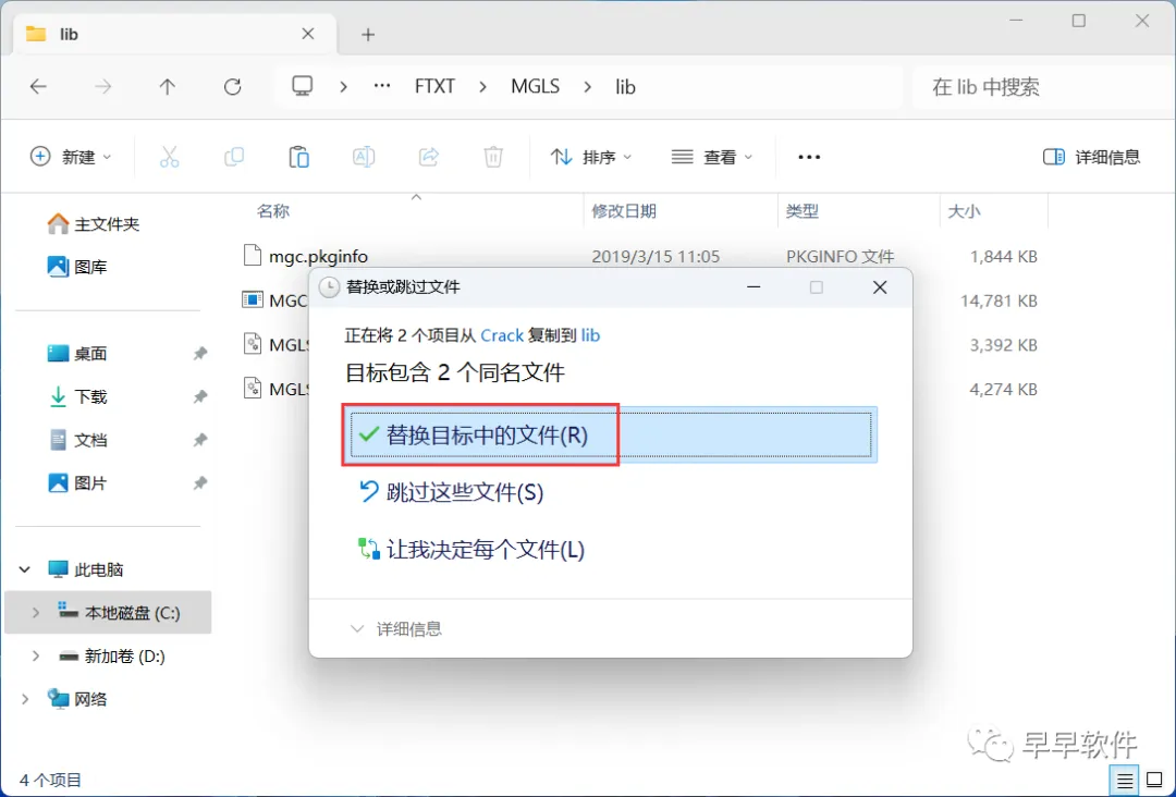 20、点击【替换目标中的文件】