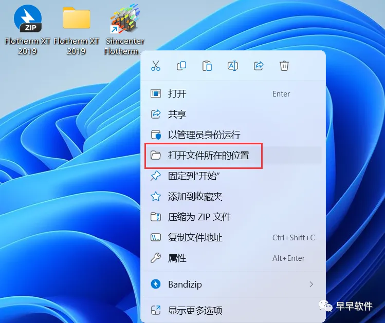 23、回到桌面,右键桌面上的【Simcenter Flotherm XT 2019.2软件图标】,点击【打开文件所在的位置】