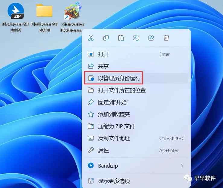 34、回到桌面,右键桌面上的【Simcenter Flotherm XT 2019.1软件图标】,右键选择【以管理员身份运行】它