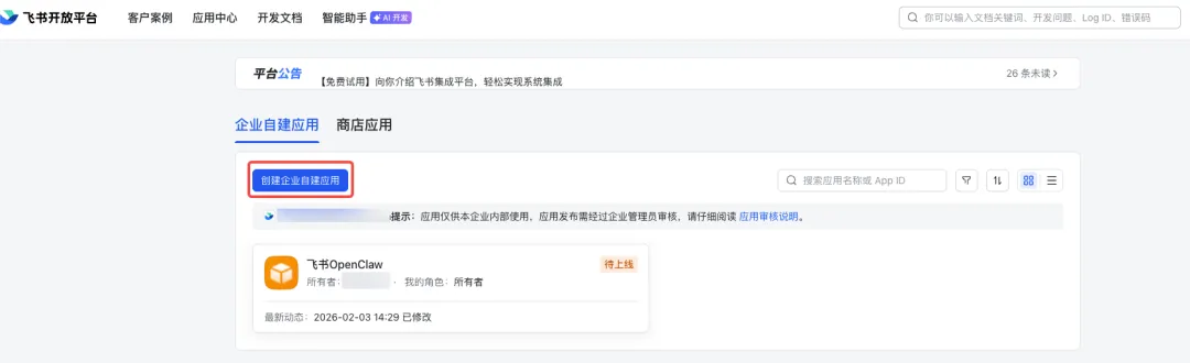 第一步:创建飞书应用(养个“飞书壳”)