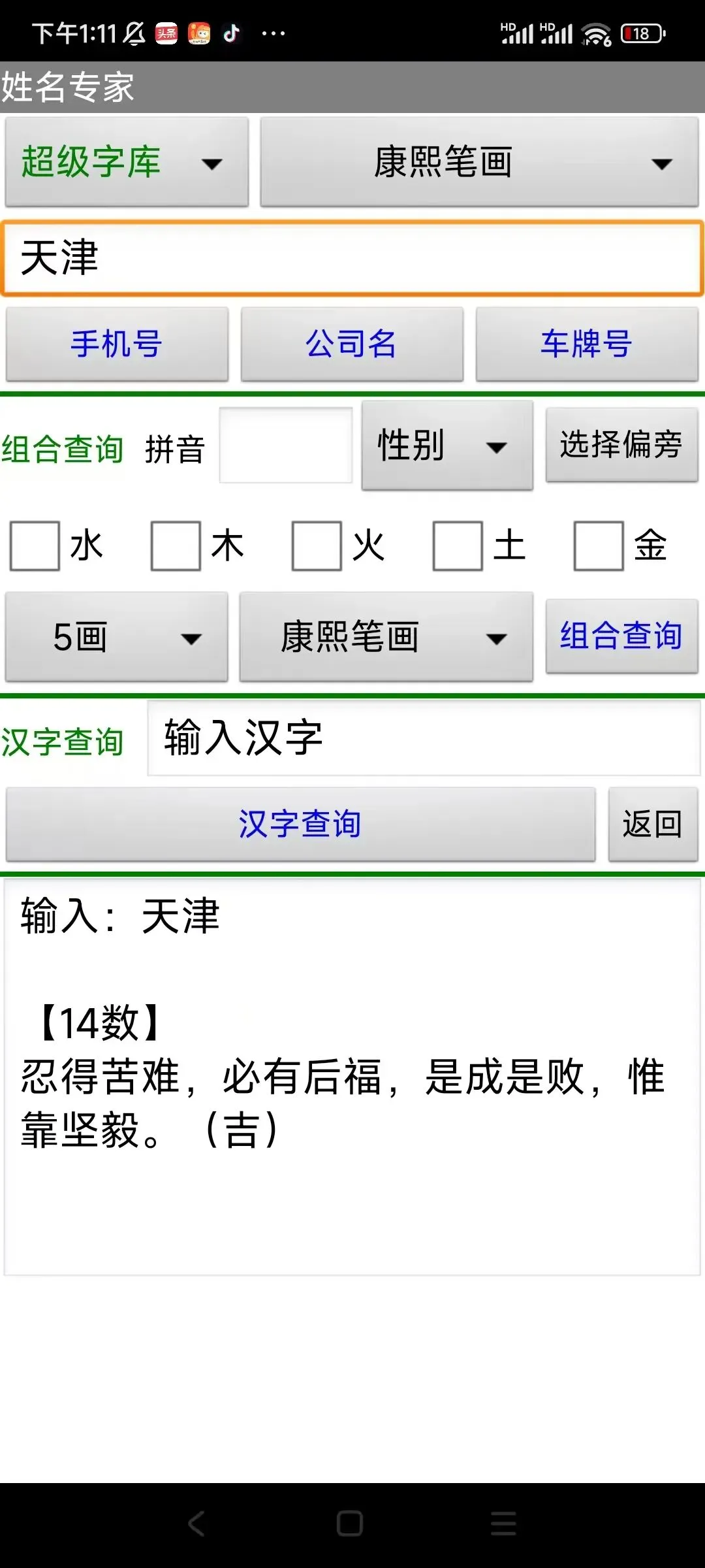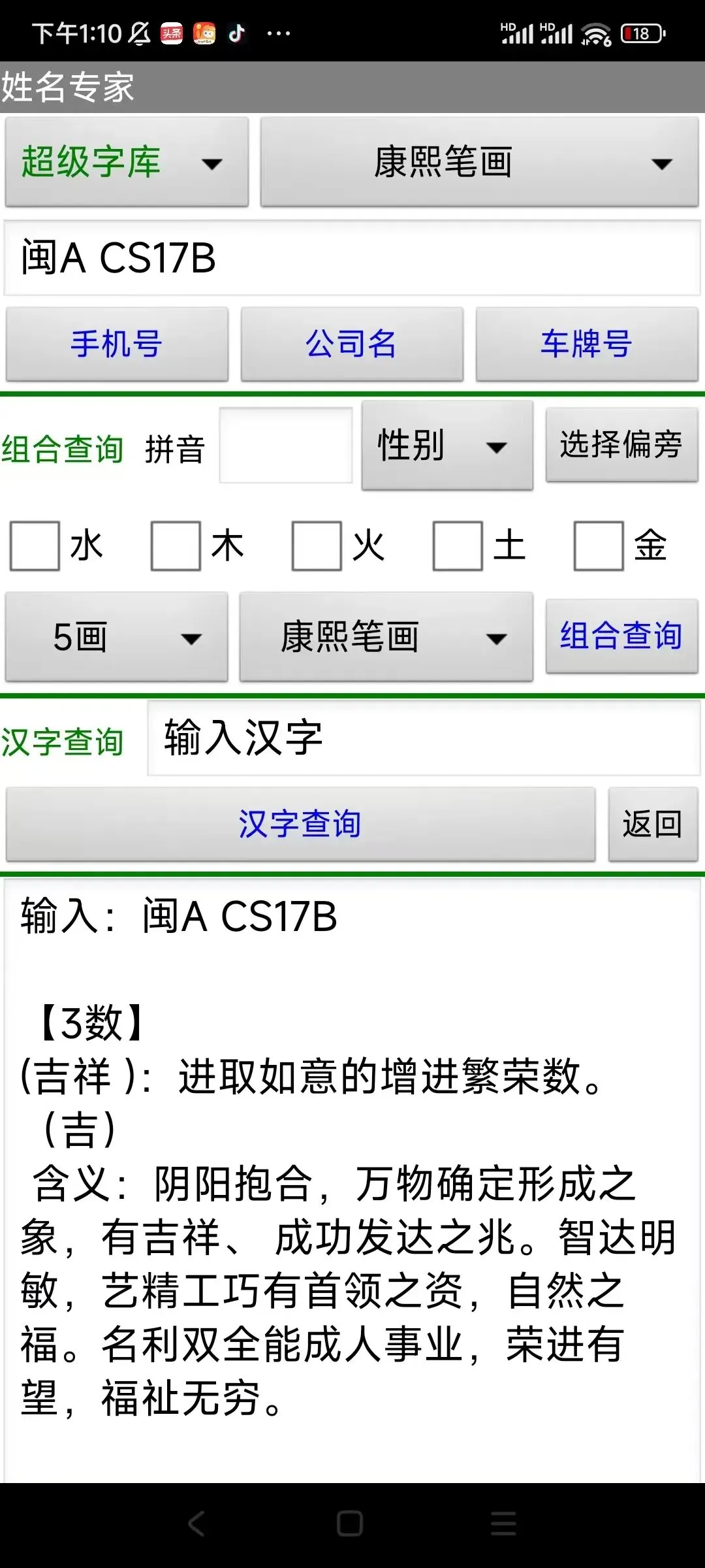 软件包括了姓名分析,个人起名,公司起来,手机号,车牌号,公司号分析,汉字查询等功能。具体如下: