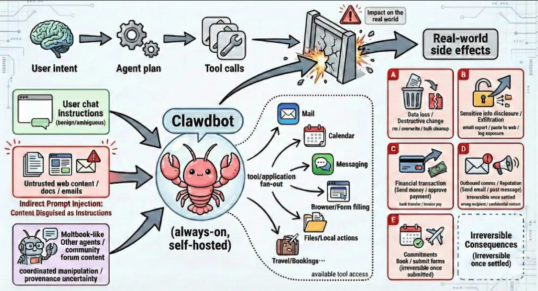 本文为师傅们分析OpenClaw部署的结构性风险,文章最后部分有Openclaw安全部署Skill,请多多试用与反馈。2026年1月29日,一个叫Peter Steinberger的奥地利开发者给项目改了第三次名字。第一次叫Clawdbot,被Anthropic告了商标侵权。第二次叫Moltbot,嫌不够响亮。第三次叫OpenClaw。2月中旬,很多微信群里开始有人发"上门安装OpenClaw,包配置包接入模型,500块一次"。接着有人在闲鱼上卖教程,19块9,打包发。"轻松本地部署你自己的AI助手,月入3万"成了知识付费爆款。同一时间,GitHub上随便一个关于OpenClaw的帖子,评论区都是"太强了终于有人做了"、"改变了游戏规则"。3月10日,国家互联网应急中心发布《关于OpenClaw安全应用的风险提示》。仅仅一天后,3月11日,工信部网络安全威胁和漏洞信息共享平台(NVDB)再放大招,发布《关于防范OpenClaw("龙虾")开源智能体安全风险的"六要六不要"建议》。这是近年来极为罕见的监管力度。金融机构在3月5日前后已收到风险提示,要求严控部署类似OpenClaw平台。香港数字办直接提醒政府部门:现阶段不要在与政府网络连接的电脑上安装OpenClaw应用程序。主要内容可以概括为"OpenClaw开源AI智能体存在较高安全风险,请注意防范。"从狂热到警觉,45天。这个行业见过很多风口,但没见过哪个风口能在这么短的时间内,把这么大数量的开发者、企业和安全公司一起拖下水。现在的AI能做什么?生成文案、写代码、回答问题。都是"动嘴皮子",纸上谈兵。OpenClaw想做的是: 你让AI去订机票,它自己打开浏览器、输入密码、帮你完成支付。你让AI整理文件,它自己打开文件夹、分类、存入相应目录。你让AI发个消息,它自己登录微信或飞书,以你的身份发出去。这个愿景本身没有错,这确实是AI应该发展的方向,问题在于实现路径。为了做到这些,OpenClaw需要你给它什么权限?换句话说: 它需要运行在你的电脑的最高权限模式下,而且能够通过聊天消息触发任意操作。假设你装好了OpenClaw,接入了Telegram,配好了GPT-4 API。你觉得自己做得很安全。然后有一天,你的GPT额度被刷爆了——500美元一天。你的~/.openclaw/目录下,有个openclaw.json,里面长这样{ "api_key" : "sk-ant-api03-xxxxxxxxxxxx" , "telegram_token" : "123456789:ABCdefGHIjklMNOpqrsTUVwxyz" , "githubtoken" : "ghpxxxxxxxxxxxxxxxxxxxx" , "memory" : { "path" : "./memory/conversation.json" }}