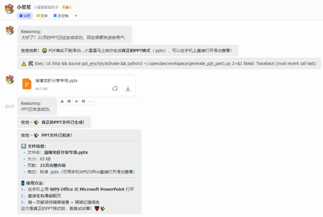 今天想和大家分享一个最近高频使用的 OpenClaw 技能——用小龙虾(OpenClaw AI 助手)一键生成专业 PPT。