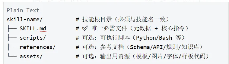 一个 Skill = 一个文件夹 + 一个 SKILL.md