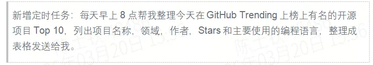 目标:实现每天早上8点定期抓取当天 GitHub Trending Top 10 的开源项目。