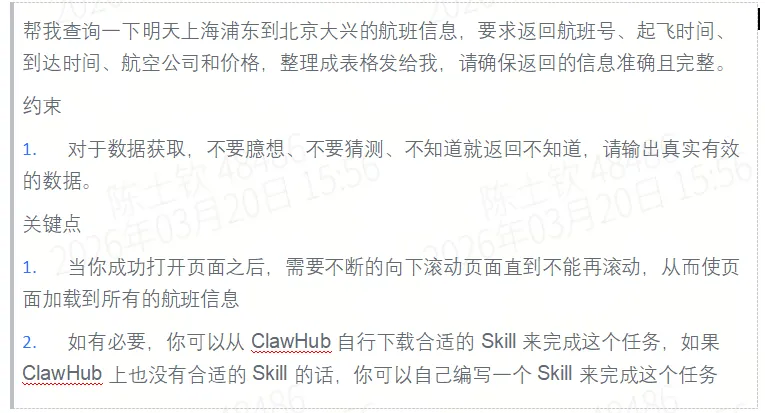 本案例重点利用到了 OpenClaw 控制浏览器进行自动化流程操作,其中需要从 ClawHub 安装 Playwright 作为自动化辅助工具。同时,提示词中也要明确给大模型定义明确的要求和约束,防止大模型进行“自我发挥”。