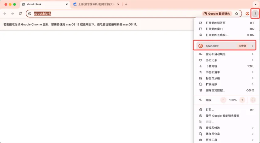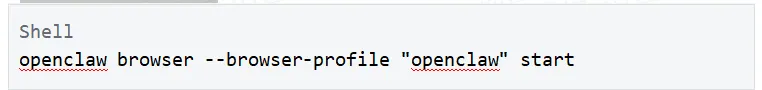 打开专属浏览器实例:openclaw browser --browser-profile "openclaw" start