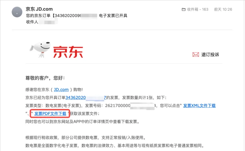 3. 开票邮件特征:来自京东且邮件内容包含“电子发票”关键字