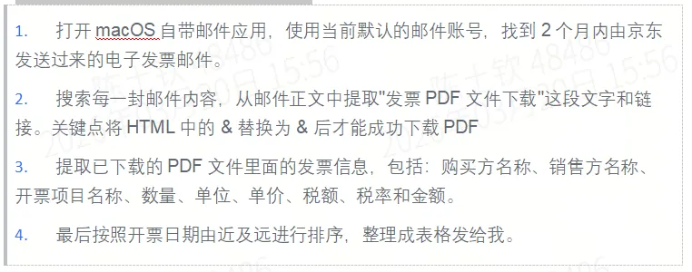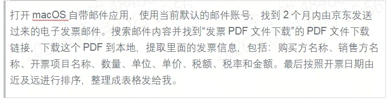OpenClaw 需要读取邮件内容,并提取“发票 PDF 文件下载”的下载链接,然后下载发票 PDF 文件,最后识别 PDF 文件中的开票信息。