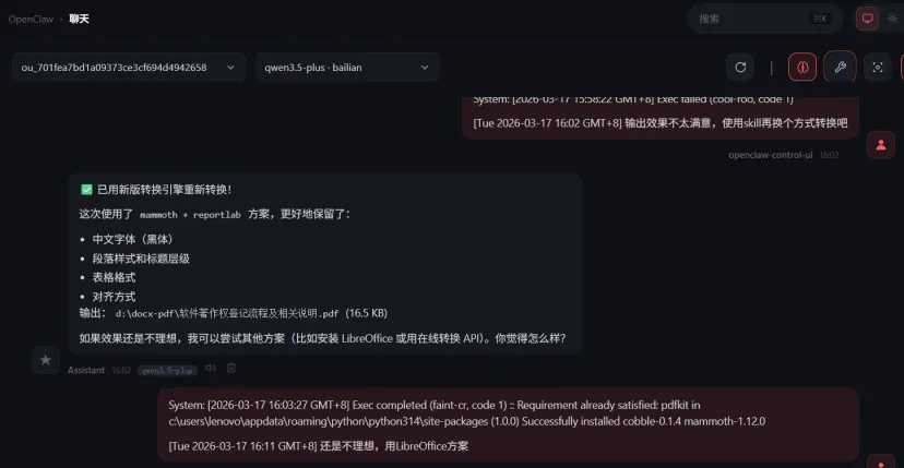 接下来针对目前的问题与 OpenClaw 进一步对话:
