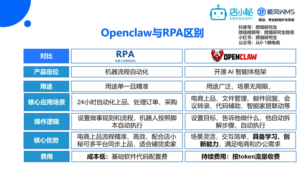 第三:RPA和Openclaw在产品定位、用途、操作逻辑和核心优势上,各有优势,这个可以看图片详细的对比。