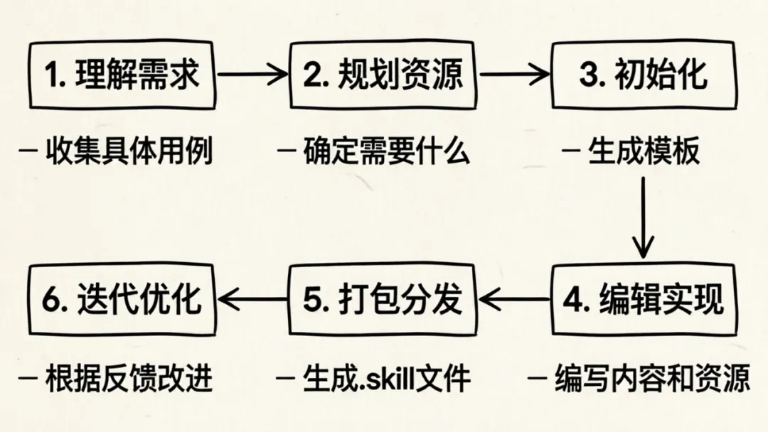 # 基础用法scripts/init_skill.py my-skill --path skills/public# 指定资源目录scripts/init_skill.py my-skill --path skills/public --resources scripts,references# 包含示例文件scripts/init_skill.py my-skill --path skills/public --examples步骤 4:编辑实现
