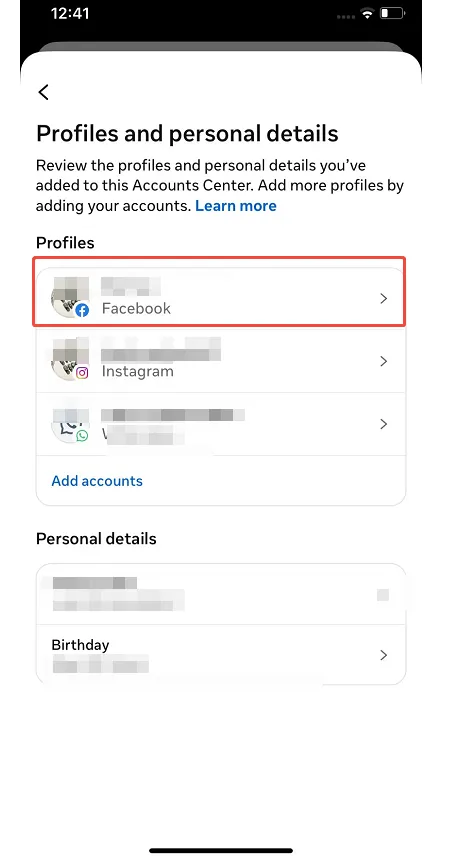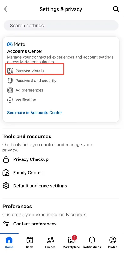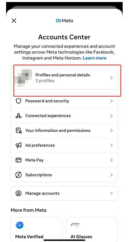 - 点击Personal details。然后选择Profiles and Personal details