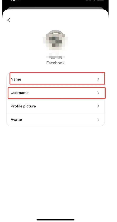 点击Facebook,然后选择Name 和UserName