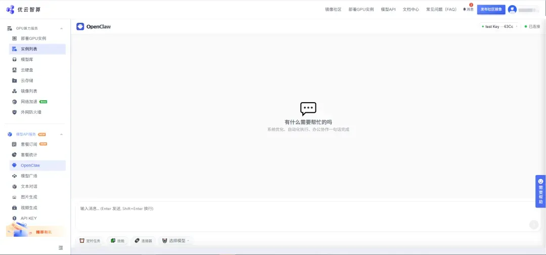 想让AI助手直接进入你的工作聊天软件?优云智算OpenClaw连接器功能,让接入变得前所未有的简单。