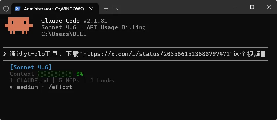 其实如果你想下载某个视频到本地,无论是油管、B站、X上的,只需要在本地电脑上打开Claude Code,输入以下命令:通过yt-dlp工具,下载"https://..."这个视频。然后就没有然后了,已经把视频下载到你的电脑上了。