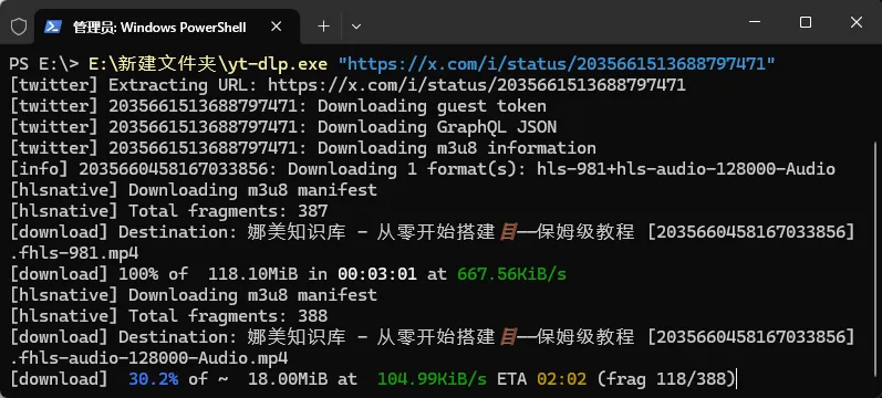 聪明的你肯定猜出来了,我自己下载的yt-dlp.exe文件是放在了E:\新建文件夹中,如果你放在其他位置就按照自己的电脑修改下路径就可以。
