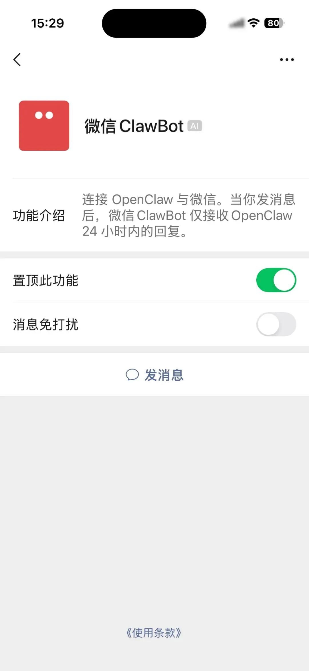 和之前微信的客服助手相比,这个更加使用更加自然丝滑,入口可以在顶级还能置顶,不像客服助手那般是折叠的。