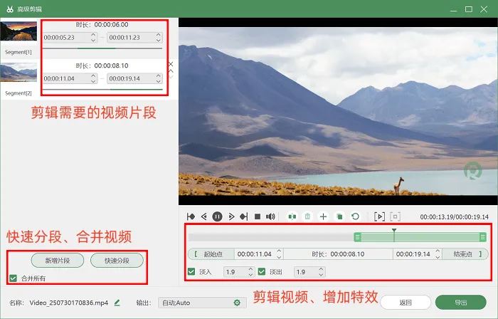 步骤3:录制结束后,无需在电脑上四处查找文件,直接在软件的视频列表中就能找到刚录制好的视频。如果视频中有不需要的开头或结尾片段,或者想要添加转场效果使视频更加连贯,可以点击高级剪辑功能进行编辑。