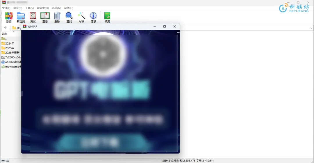 这款软件作为压缩软件领域的老牌,超级好用,我自己也在用。但是它有一个40天的试用期,虽然说到期后虽有弹窗提醒,但所有功能都不受限制,被网友们统称无限期试用版。这两款老牌工具,都挺好的,全靠自己喜好,科娱坊本人在用WinRAR,用顺手的才是最好用的。其实有好多人都还是双持,硬盘只是多占了几十MB,但是用起来很方便,也不影响个啥。大家还有什么需要的软件、工具可以后台私信我或者评论区留言~▌软件获取