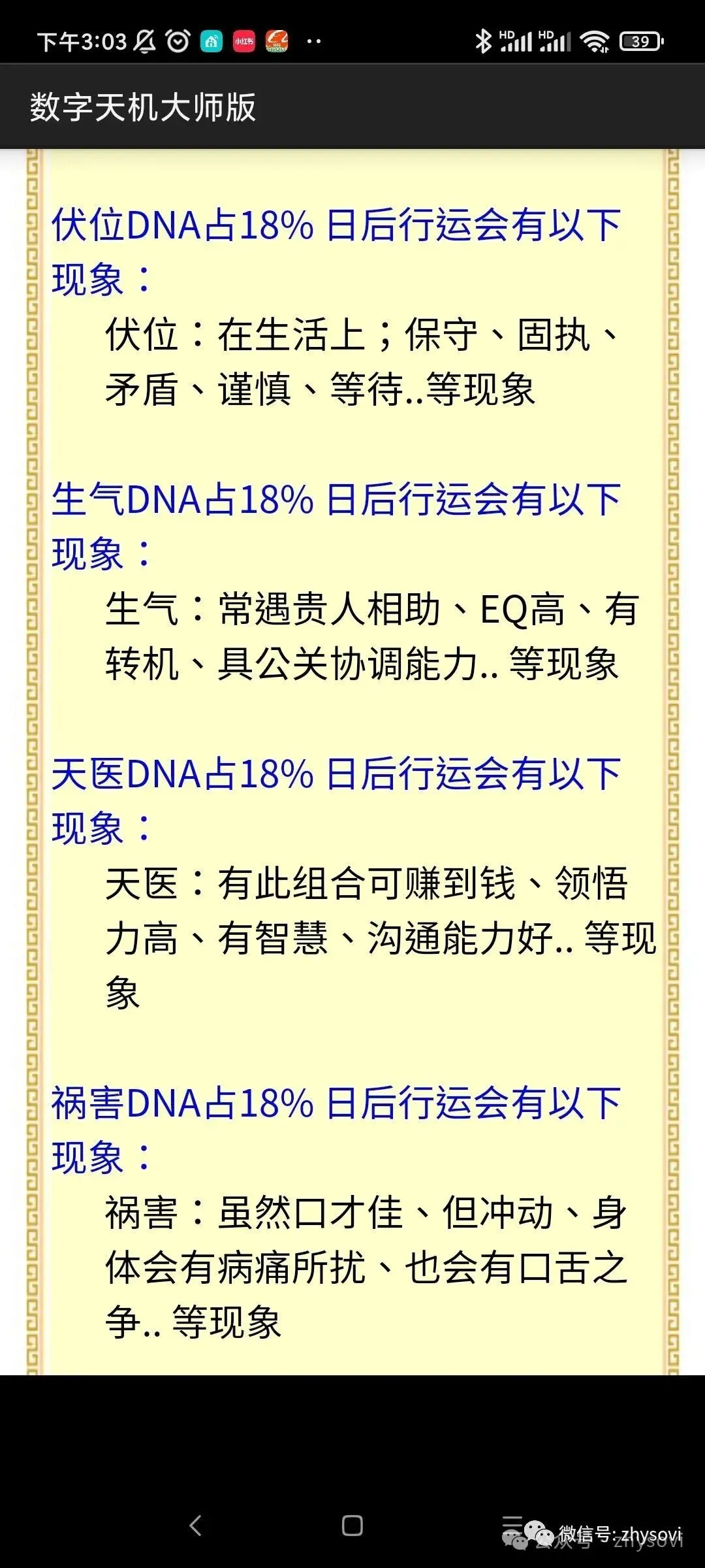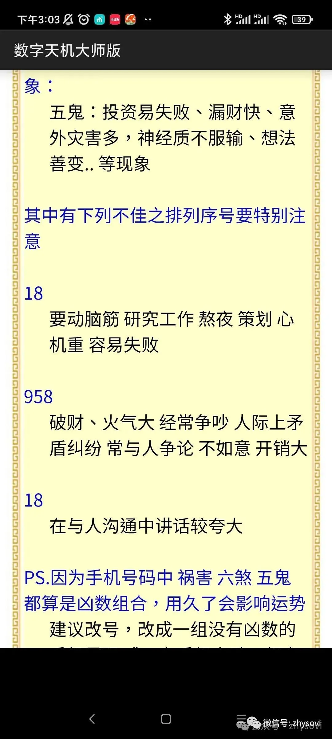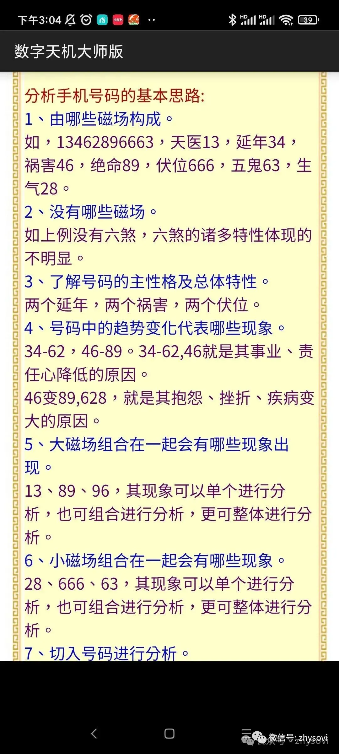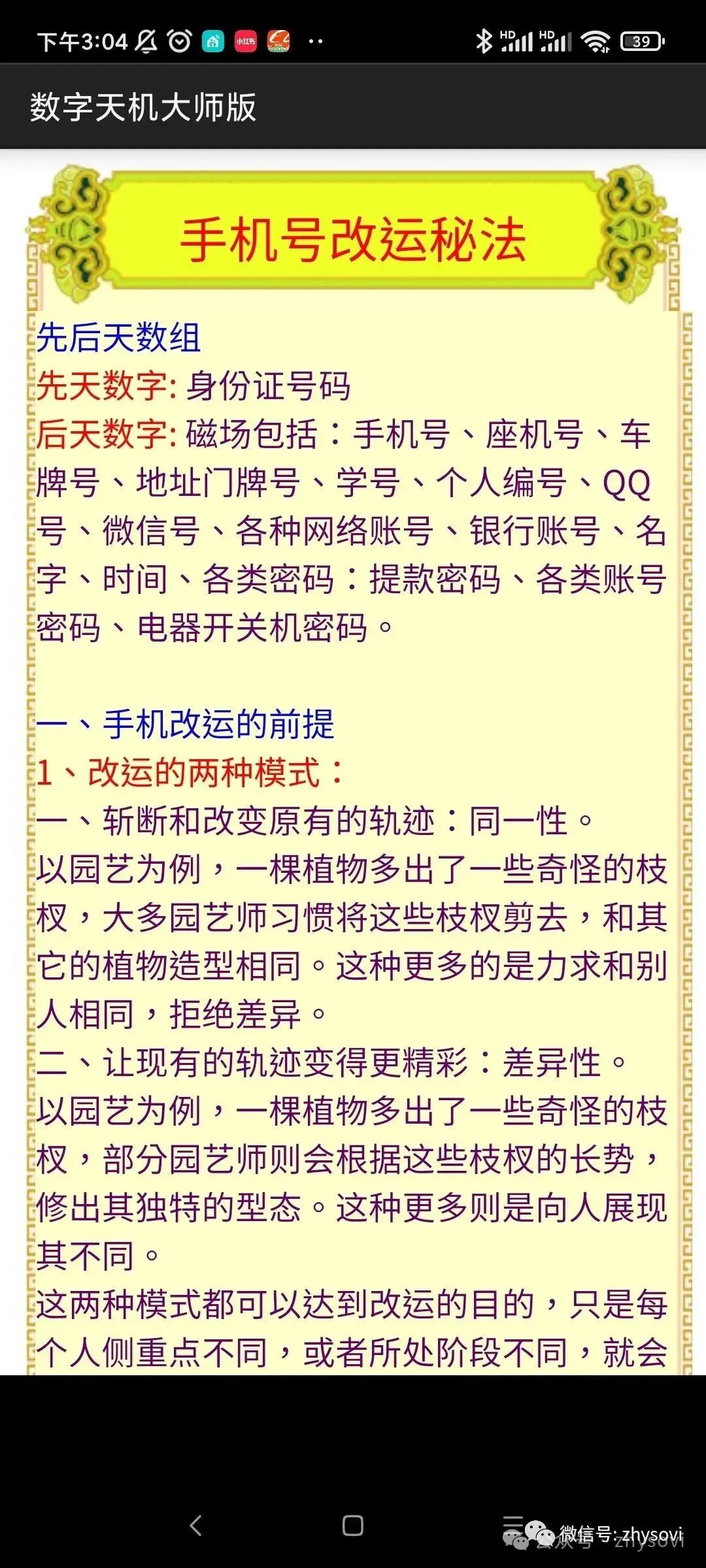 这是一款数字天机易学专业软件,非娱乐软件。 数字天机,关乎您的事业、财运、身体、学业、婚姻感情等吉凶祸福,如手机号码、身份证号、微信号码、QQ号码、汽车号牌、银行卡号、门牌号码、各类密码,都是有能量的。经过易学工作者上万次验证,是真实有效的。
