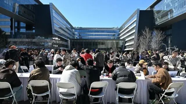 2026年3月11日,在北京百度总部,人们排队等待安装开源人工智能助理OpenClaw。