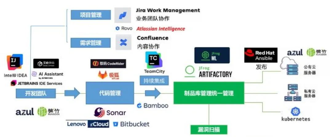 代码管理:Git、GitHub、GitLab、Bitbucket 文档管理:Confluence、Notion、语雀 流程管理:Jira、Trello、Asana 配置管理:Ansible、Chef、Puppet
