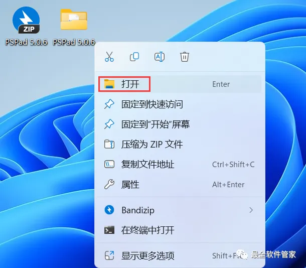 4、回到桌面,右键桌面上的【PSPad软件图标】,点击【打开】