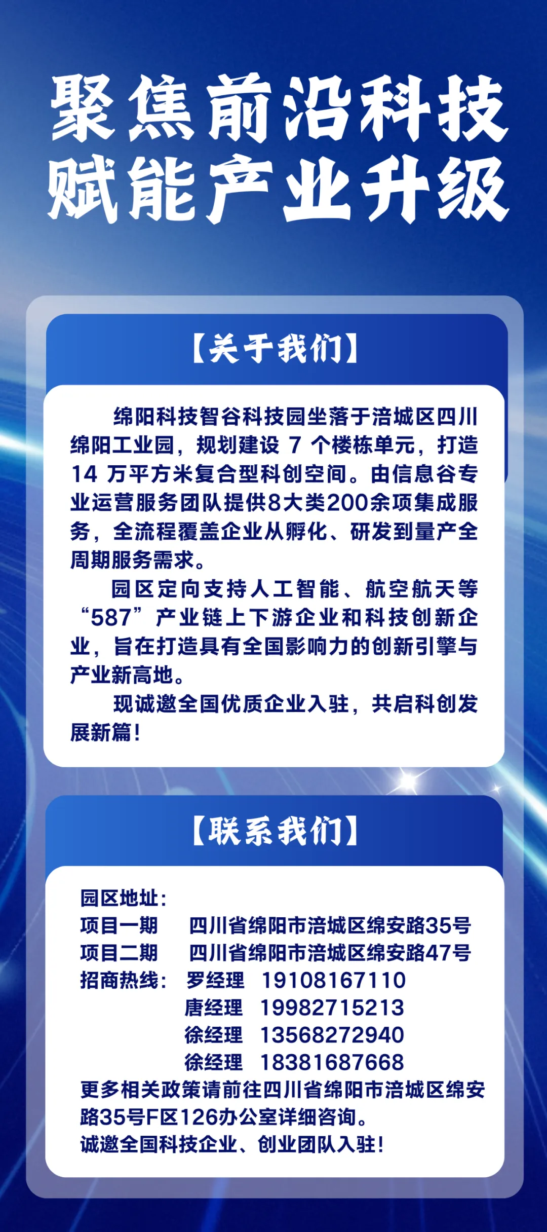 创新情报站丨OpenClaw从现象级爆火到AI通用化的关键一跃来源:北国资END【科技智谷科技园】——位于涪城区四川绵阳工业园北区,园区占地66亩(约4.4万平方米),紧跟绵阳市“587”产业体系,重点发展人工智能、航空航天、低空经济等产业链,通过“孵化加速+资源链接”模式,为企业提供技术转化、政企协同、资本对接等支撑,助力产业生态构建。科技智谷科技园办公空间灵活多元,适配初创至成熟企业全周期需求;智慧设施齐全,中央空调与新风系统保障舒适办公;停车便利(1010个车位+80个充电桩);交通发达早晚免费通勤车,公路系统发达,多趟动车37分钟往返成都,南郊机场提供国内航线,便于出行。想了解更多细节,从一通电话开始!拨打下面成功热线,助力企业快速落地!科技智谷科技园长按二维码,一键加关注