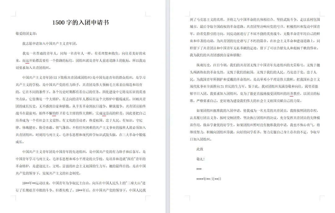 ◆本期分享:入团申请书模板(10套)