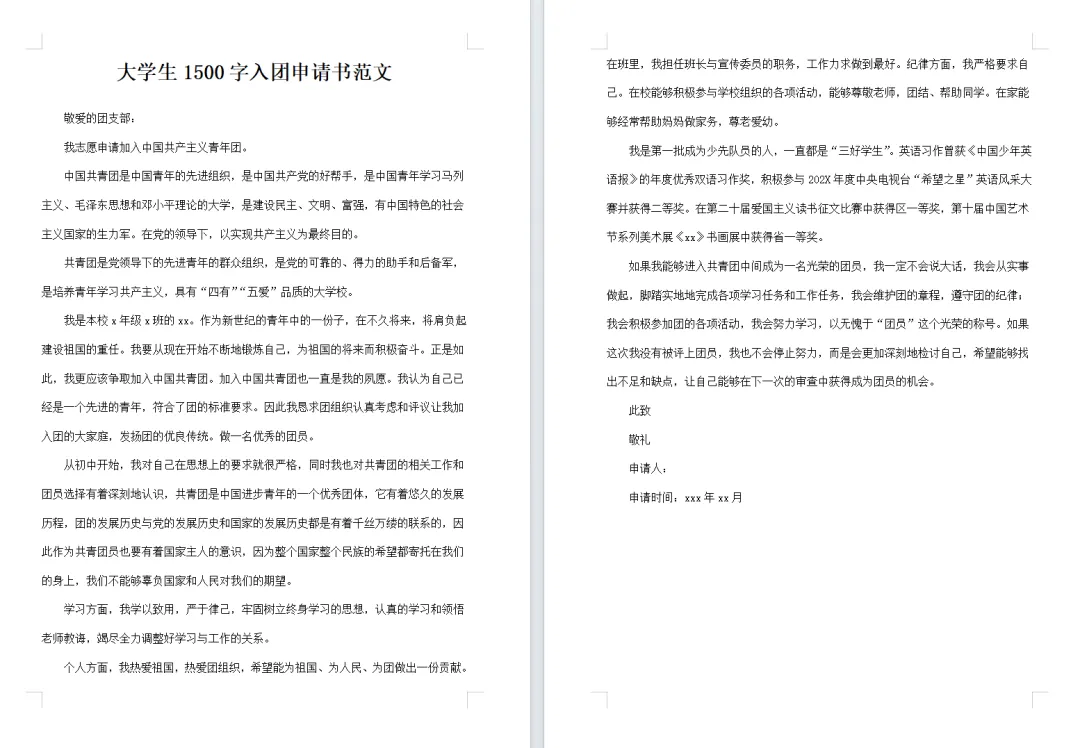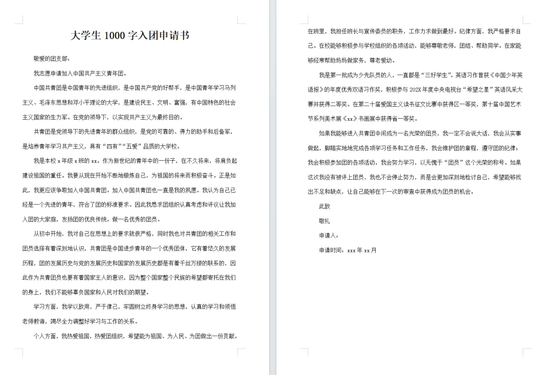 入团申请相信是很多同学在大学期间都会遇到的一个“作业”,不过不慌,小编今天直接给大家带来了10套2026年最新的入团申请书模板,有800字、1000字、1500字的,各位根据自己的需求下载后修改即可提交~