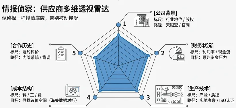 在你联系供应商之前,你需要做的第一件事就是调研,把对方的核心信息和报价逻辑摸个八九不离十。这就像在地图上标出对方的据点和可能的行军路线。