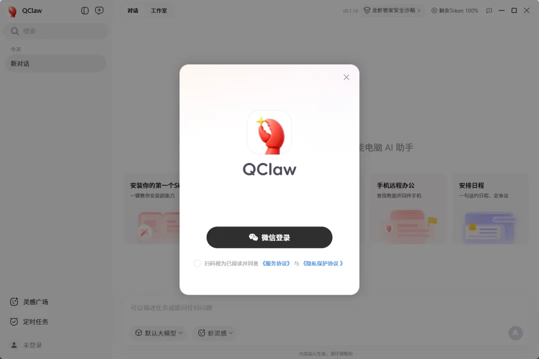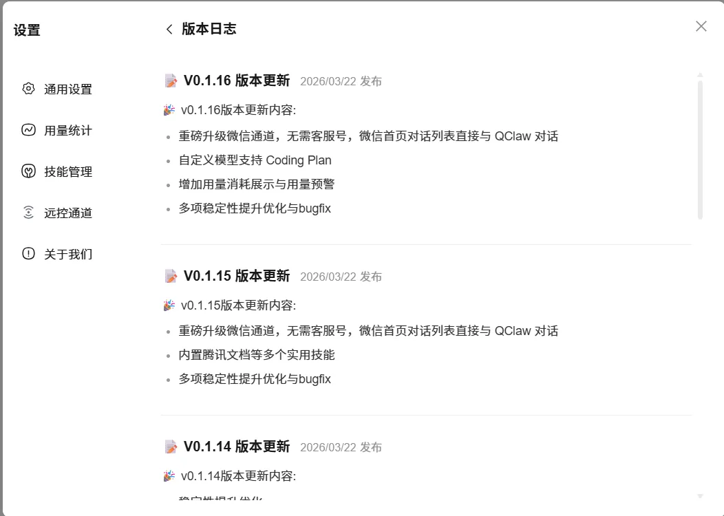 刚刚提示我Qclaw可以更新了,我更新到了v0.1.16