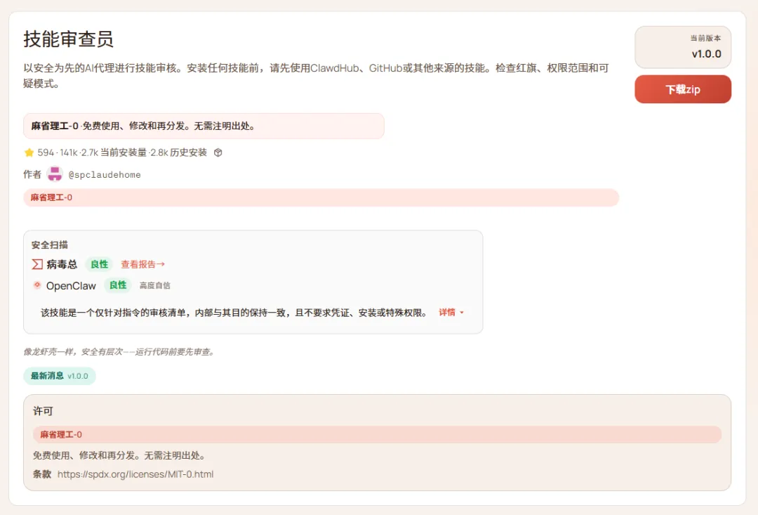 技能安装前审计:在下载或使用第三方技能前运行此工具,检查其权限声明、可疑系统调用或潜在恶意代码,保障环境安全。
