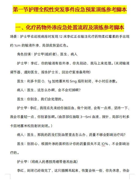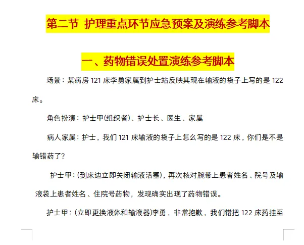 今天给大家分享一份护理应急演练脚本大全,涵盖各科室典型护理意外处理演练脚本。