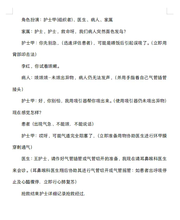 护理应急预案演练脚本