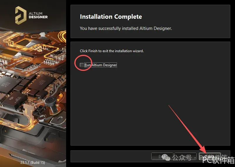 11.取消勾选【Run Altium……】,点击【Finish】。