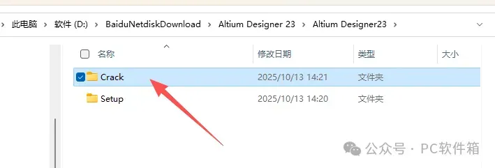 12.打开安装包解压后的【Altium Designer 23】文件夹,双击打开【Crack】文件夹。