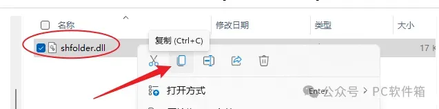 13.鼠标右击【shfolder.dll】选择【复制】。