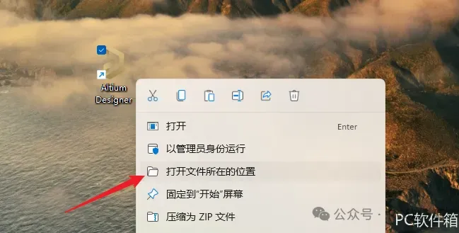 15.鼠标右击桌面【Altium Designer】图标选择【打开文件所在的位置】。