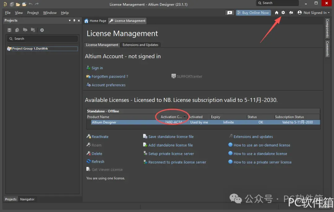 21.提示“Activation”后点击右上角【设置符号】。