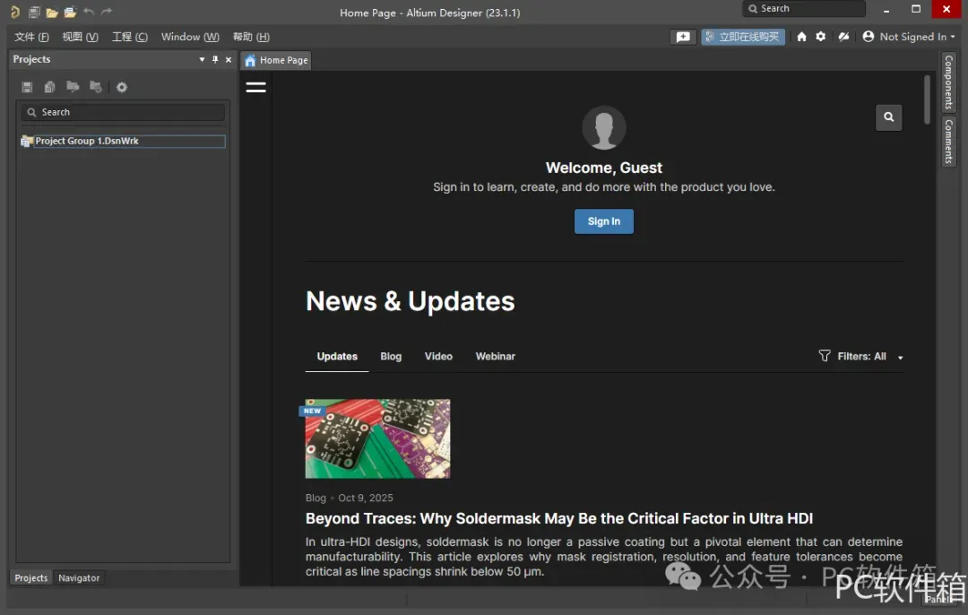 Altium Designer 23是Altium推出的PCB设计软件,主要面向电子工程师和设计师,支持从原理图设计到PCB布局、布线及信号完整性分析的全流程设计。